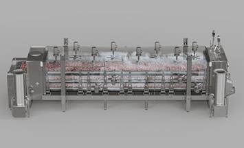 Our cryogenic batch freezers and batch chillers are based on the same freezing process, where liquid is sprayed, and vapor is circulated by fans to ensure rapid freezing and chilling. Controlled over-pressure inside the equipment pushes the excessed gas out – this is also known as 'passive exhaust'. This makes the solution easy to install, as it doesn’t need an external exhaust blower or a gas purge.